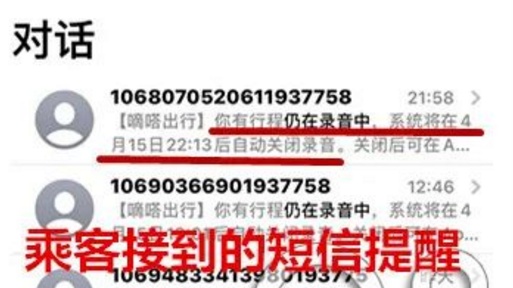 ▲乘客接到“仍在录音”的短信提醒