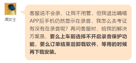自己都已经下车了,还要被多录20多分钟,闻女士将录音截图发给客服,客服却让她卸载软件。