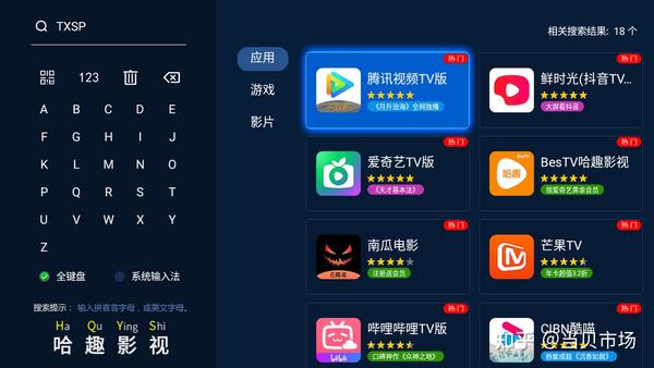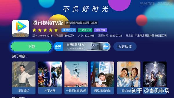电视端:腾讯视频TV版,可安装当贝市场下载