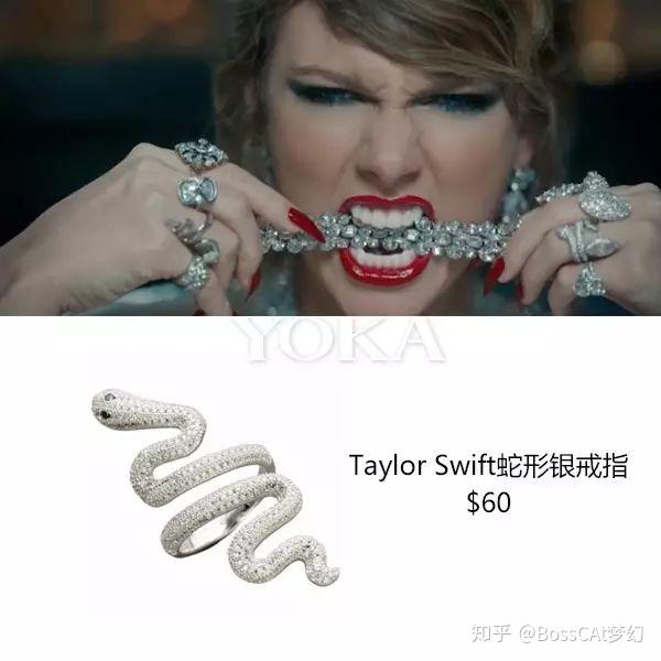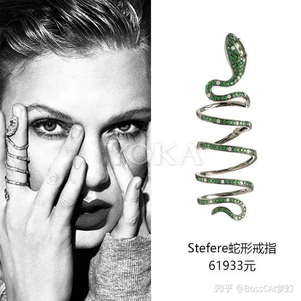 手上的蛇造型戒指更多,蛇也只配在MV里服务蛇皇霉霉了。