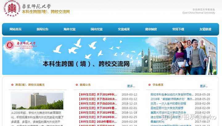 学校每年都会有很多的海外交流项目可以申请,其中有一些就是科研走向的。以我所在的华东师范大学为例,第一步当然是登录 华东师范大学本科生跨国(境)、跨校交流网( http://www. jiaoliu.ecnu.edu.cn/ ) 。