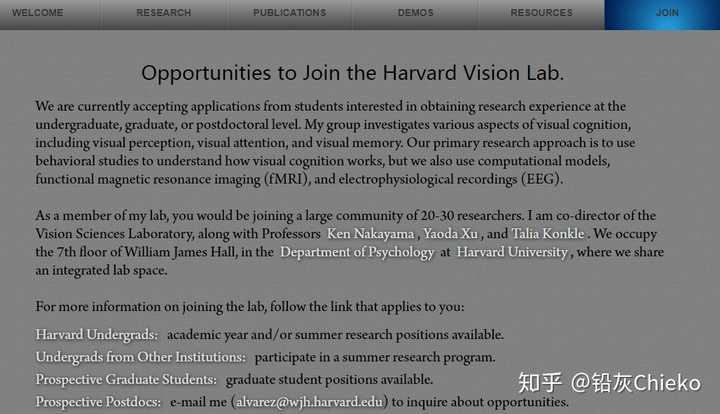 一些lab在招RA的时候会特别说明 希望RA具备的技能和经验 ,例如发展心理学的lab很看重你和儿童相处的经验,还有心理学lab普遍看中的编程能力、数据分析能力,这些要求大概率都可以在你想找的lab的页面上找到。