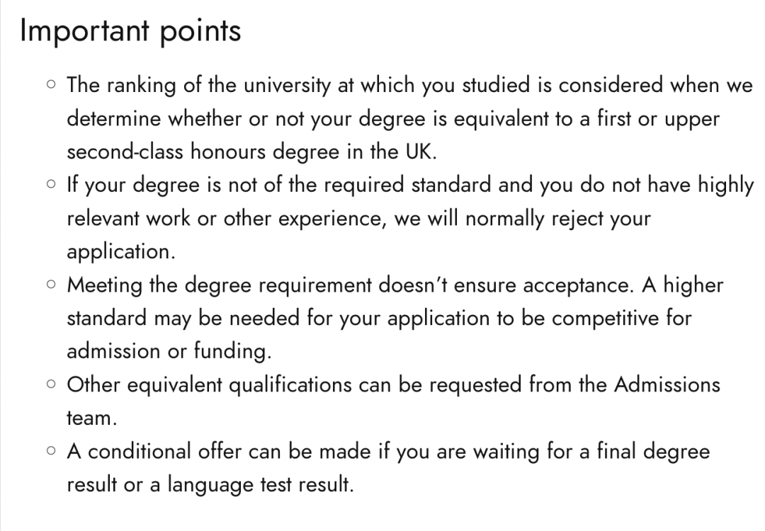 学校还强调,学位等级不是唯一录取考量点,但如果不是一等学位毕业,又缺少相关工作经验,学校则不会考虑其申请。