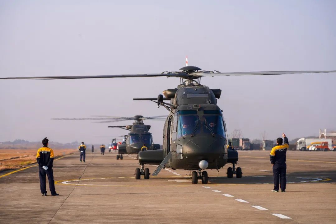 1月6日,中航工业昌飞吕蒙机场朝阳初现,曦光微露,雄鹰列阵,铁翼盘旋,随着指挥员一声令下,直升机如雄鹰振翅,拔地而起。航空人闻令而动,只争朝夕,以更加昂扬的姿态担当作为,全力奔跑助“战鹰”飞出报国新航迹。