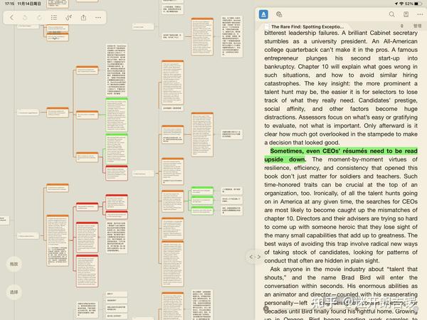 还可以同时阅读多本书(主题阅读),生成一个脑图大纲。