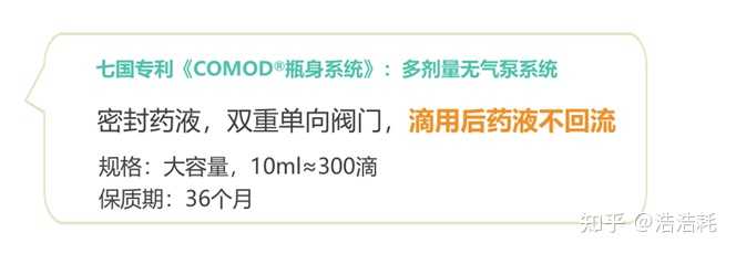 除了以上两点,我还注意到它的瓶身很特别,后来了解到是专利瓶身设计,可以形成一个类似真空的储存环境,有效避免了空气中的细菌进入,因此不用添加防腐剂,也能长期使用,在开封后也能使用12周。市面上常见的大多数眼药水,即便添加了防腐剂,开封也只能使用最多4周的时间。