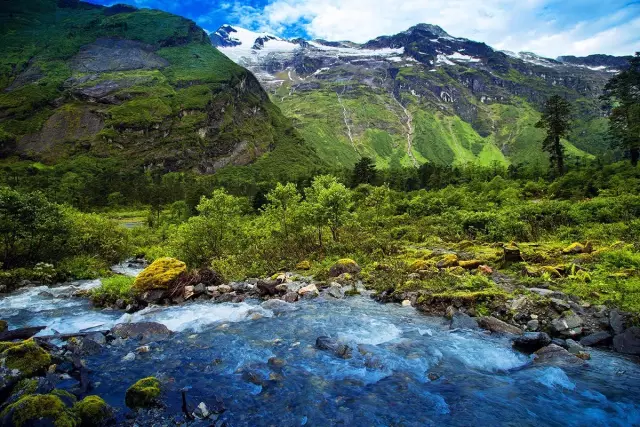 南迦巴瓦峰藏语意为“直刺蓝天的战矛”。南迦巴瓦峰山脚处温泉众多,植物异常茂密,是理想的探险登山及疗养圣地。