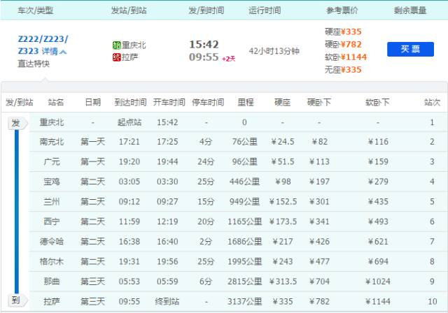 途经南充、兰州、格尔木, 9站,42小时,3137公里, 到达西藏宁静的圣地—拉萨。