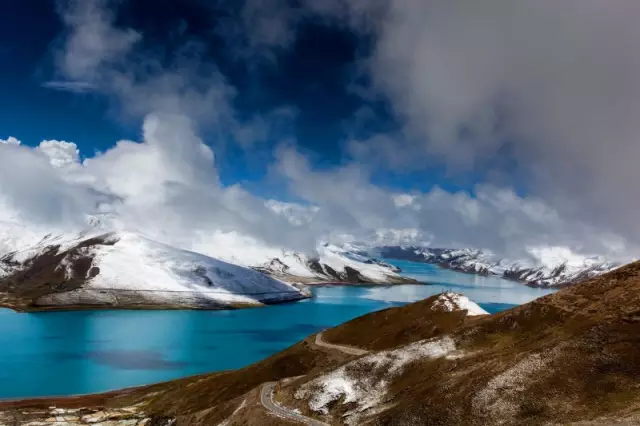 羊卓雍错简称羊湖,藏语意为"碧玉湖",是西藏三大圣湖之一,像珊瑚枝一般,因此它在藏语中又被称为"上面的珊瑚湖"。