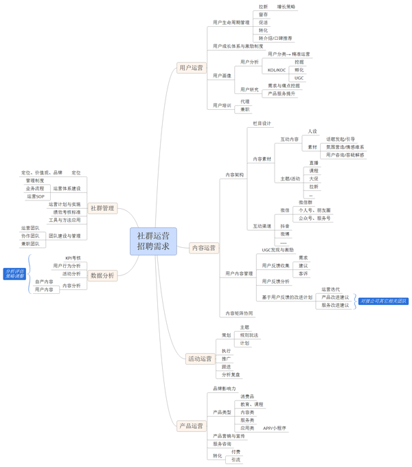 社群运营是当个活跃的群主吗,从招聘需求观察,几乎把大多数互联网运营技能打包了,如 用户运营、内容运营、活动运营、产品运营 能力 (本文将商品、平台应用、服务等都定义为产品,即最终运营目标转化的对象) ,以及从定位、流程制度到团队打造的综合 管理能力 ,和基于 数据思维 的运营能力。