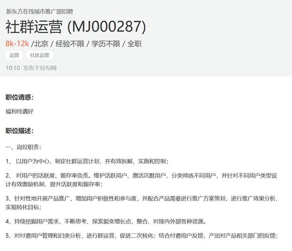 社群运营招聘样例