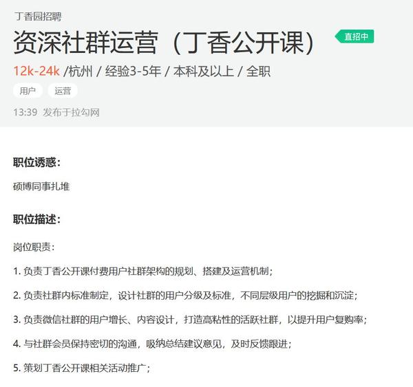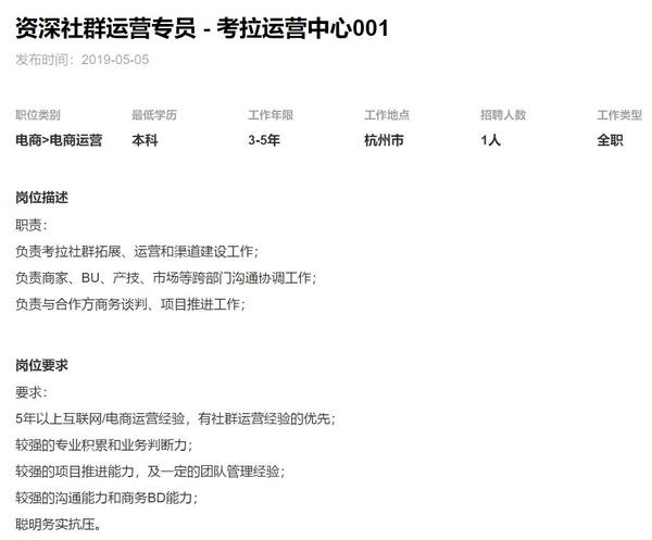 本文提供几个代表性行业领域社群运营招聘需求供参考。