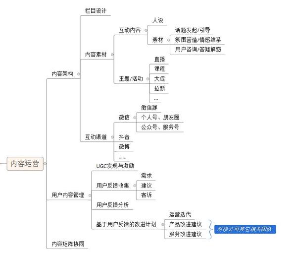- 用户内容管理 :除了主动设计表达的内容,社群产生的用户交流非常多,有很多 碎片化UGC内容 。很多企业非常重视用户交流内容中出现的客诉建议、评价评论、需求想法,这些用户反馈的内容经过整理收集,进一步分析,不仅仅指导运营迭代,还可以发挥更大的意义,提供给相关的产品和服务团队,帮助提升产品服务改进。