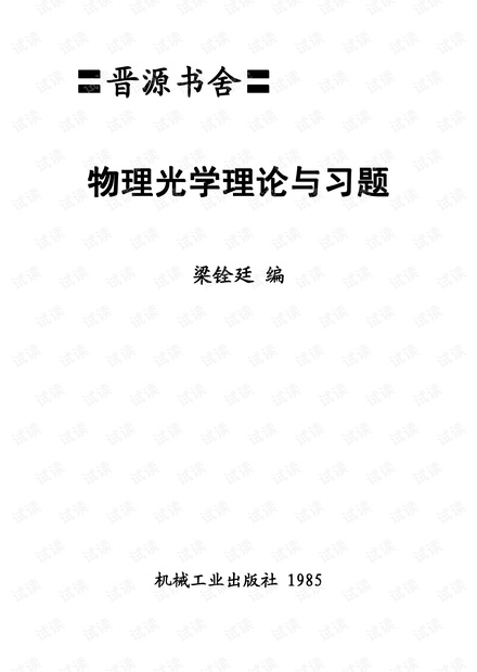 物理光学理论与习题(与梁铨廷物理光学配套),很多学校考研要用。