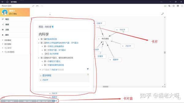 每当我在考试月突击时,我经常会拿上一张A4纸,将考试重点抄在那张A4纸上,然后随身携带,没事就会拿起来看一遍。在教室复习时,经常就把这张纸放在一旁,以便随时复习。 Roamedit 的快速浏览形成的卡片,就相当于一张A4纸,方便我们复习与修改。