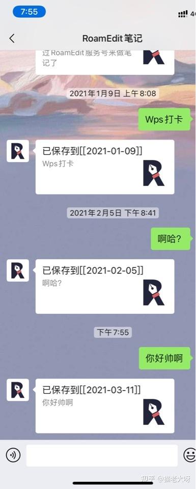 还有一个功能,和 @flomo浮墨笔记 一样,可以在微信公众号上发送消息,同时保存在roamedit的每日当中