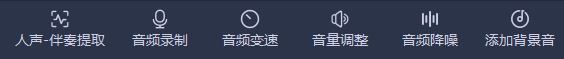 除了这些功能之外,还有音频转文字、人声-伴奏提取、音频录制、音频变速、音量调整、音频降噪、添加背景音乐的功能可以使用。