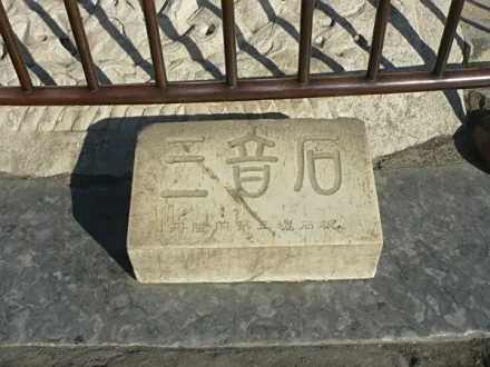 皇穹宇殿前御路的第三块石板,人称“三音石”。站在石上击掌一次,却能听到三个回音,十分奇妙。因这块石板恰于圆形回音壁的圆心位置,从这里发出的声波经由东、西配殿和回音壁墙面的反射,均能回到圆心;又因两个反射体到圆心的距离差别较大,所以能听到三声回音。
