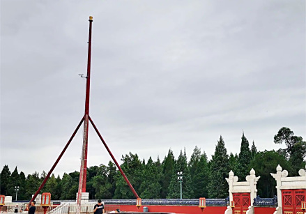 圜丘西南设望灯,系高2.15米,径1.4米圆柱形竹编灯笼。望灯杆高古尺九丈(28.8米),顶端有如意杆和滑轮,以控制望灯升降。下以石砌望灯台和夹杆石固定,旁以三根巨大木质戗杆支撑,十分稳固。大典于黎明前开始,届时望灯高悬杆头,以警示全坛庄重严肃。望灯明·清时为三座,民国三年(1914年),袁世凯祭天时伐倒两根,现仅存其一。