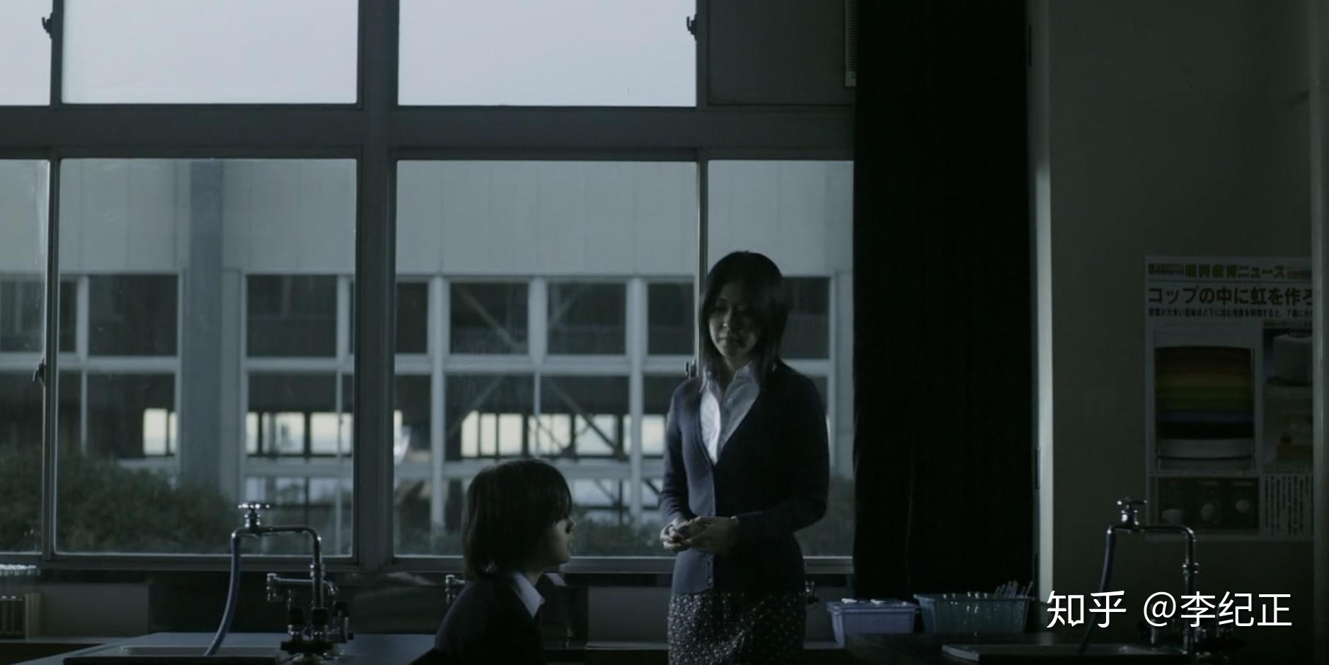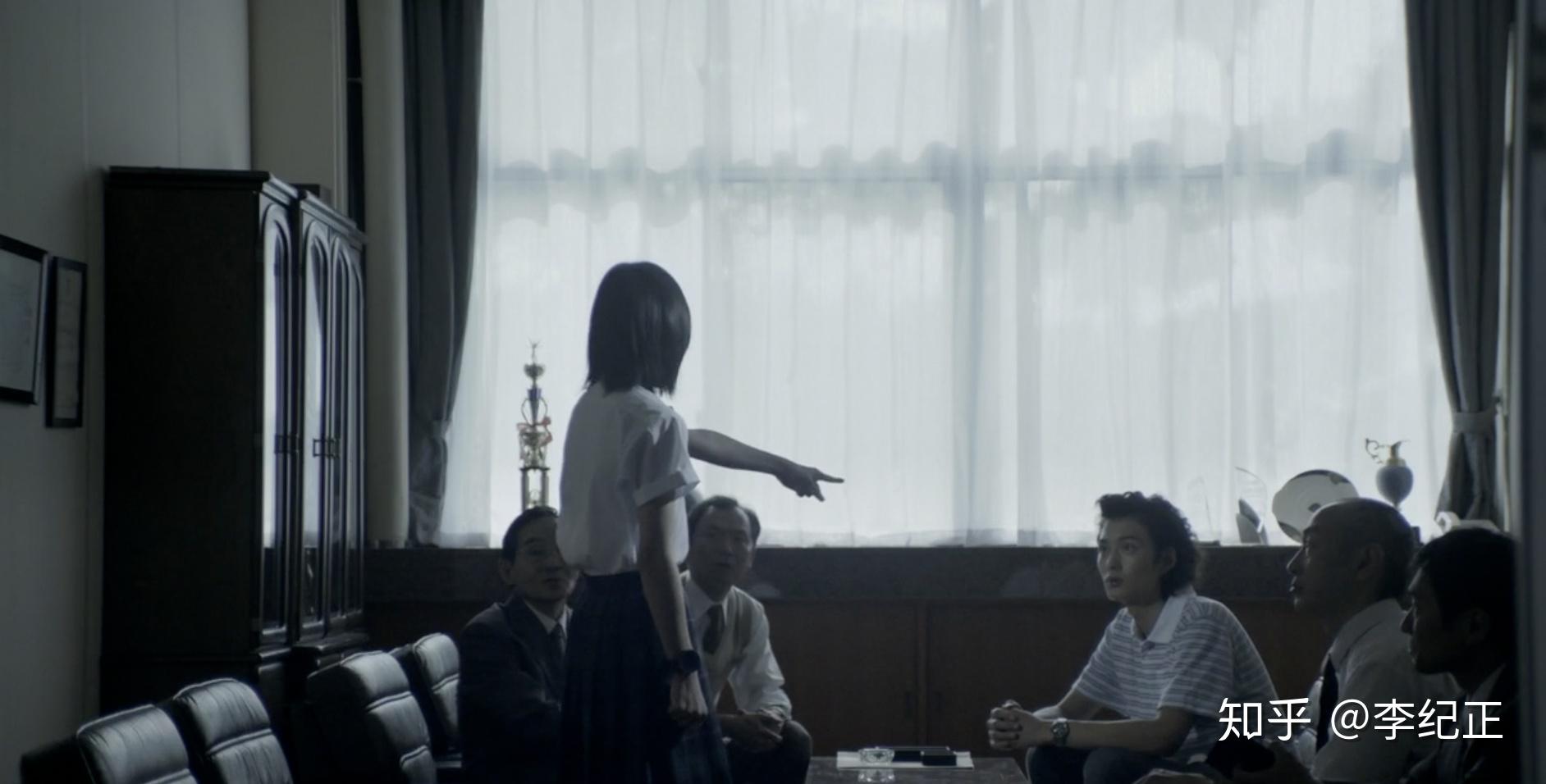 可能有人会说,也许人家教室刚好就是用的磨砂玻璃,并不是主创有意为之的。那么我们来看一下影片的16分48秒,老师的办公室是普通玻璃。