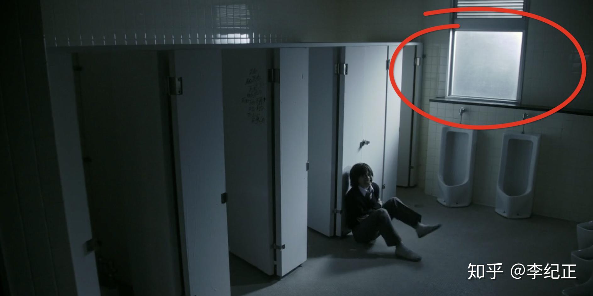 所以说,主场景教室的窗户是电影主创有意改造的。除此之外,影片中还用了多种场景手段来营造这种压抑的气氛,全片绝大多数场景都进行的这类的半透明的处理。