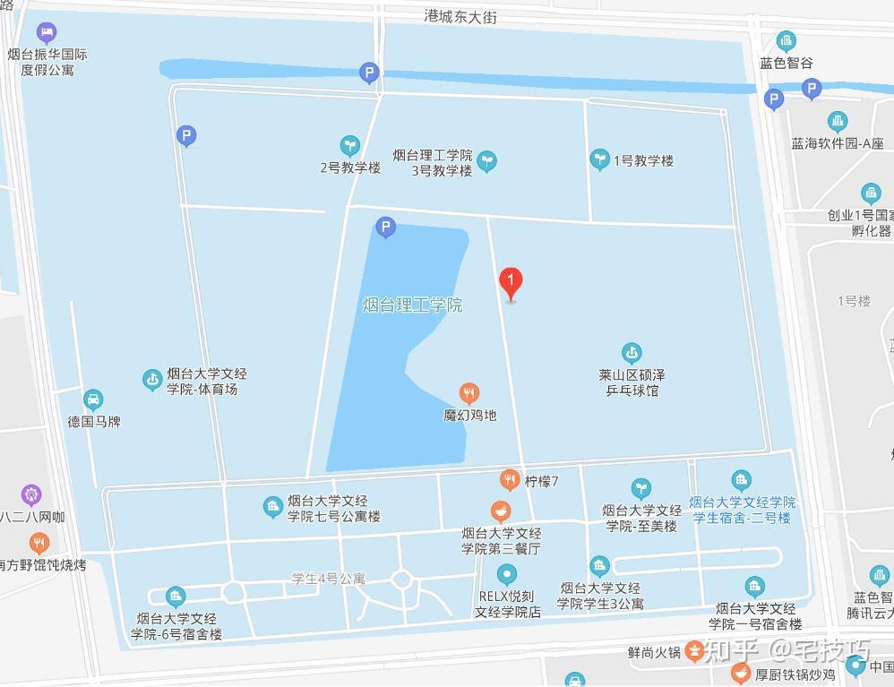 烟台理工学院 共3座教学楼、7座宿舍楼(5个女生宿舍2个男生宿舍)、三个餐厅、一个综合楼。