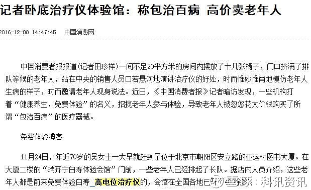 警惕!上万元的“高电位治疗仪”在全国各地售卖!当心骗局