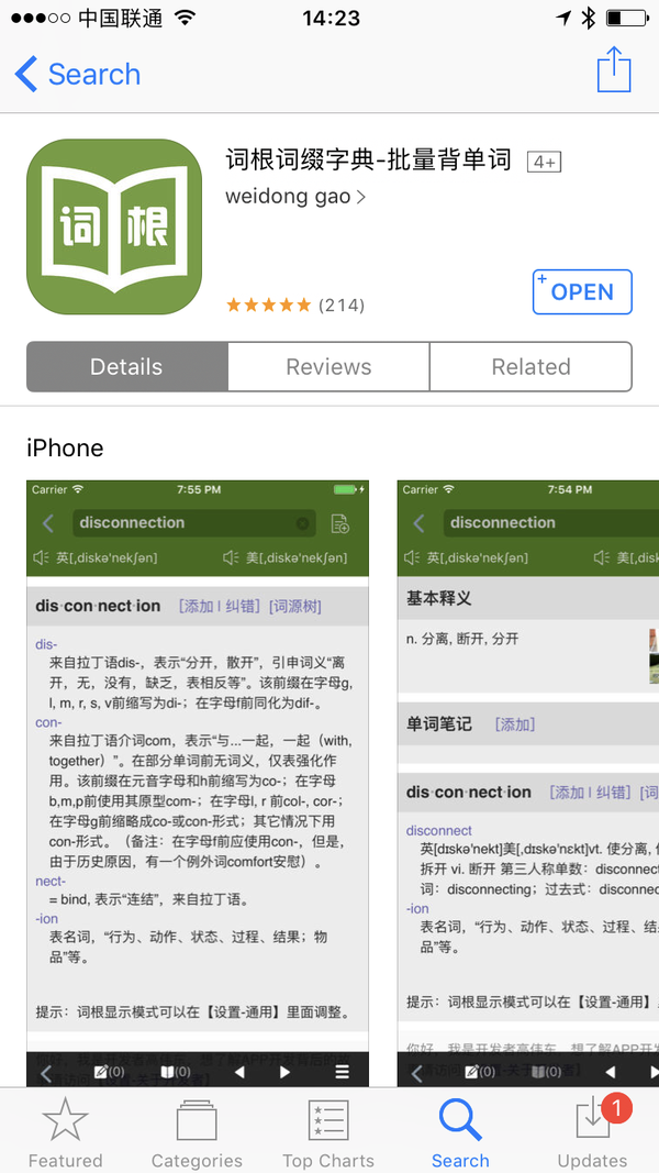 今天想推荐一个手机App,在第二阶段的人会感激它 词根词缀词典,ios、安卓都能直接下载。