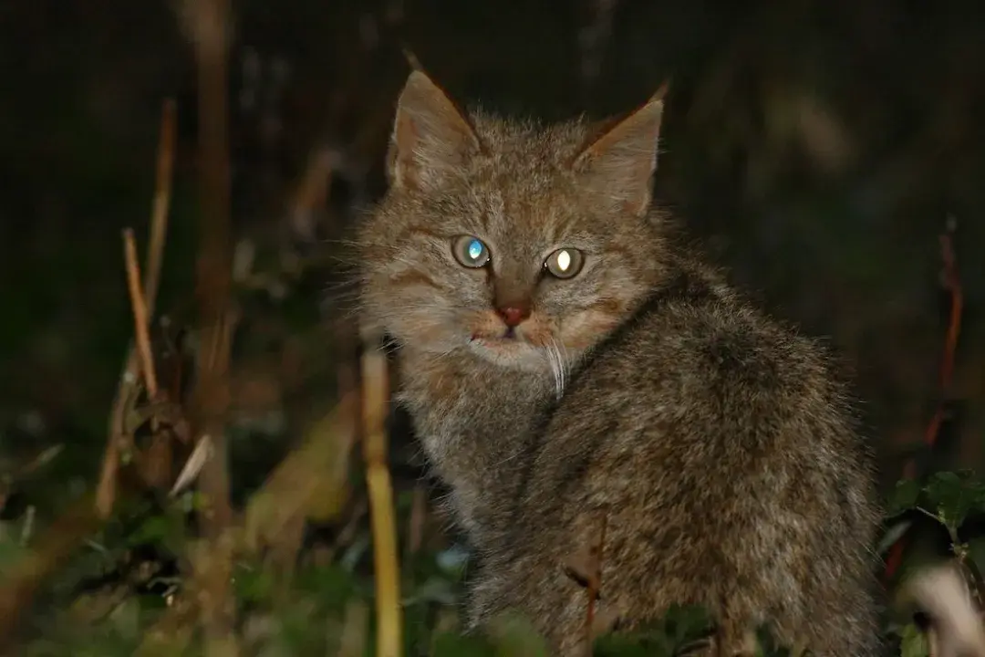 荒漠猫-中国特有猫科动物,目前是国家一级重点保护动物,拍摄于若尔盖县巴西林场。荒漠猫作为小型猫科动物,一直非常神秘,除了一些红外相机拍摄的资料外长期缺乏影像资料,由张铭拍摄到的荒漠猫影像资料为该物种的进一步研究和保护提供了有效的资料和数据。