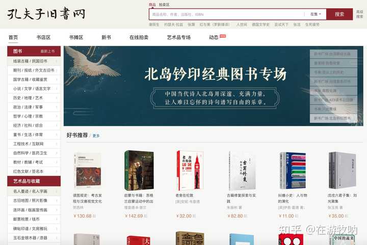 孔夫子旧书网是目前国内二手书交易平台的霸主。书的种类多,包括但不限于一些古籍文献、绝版好书等;同时不止于书,还有一些艺术品如名人墨迹、碑帖印谱等。