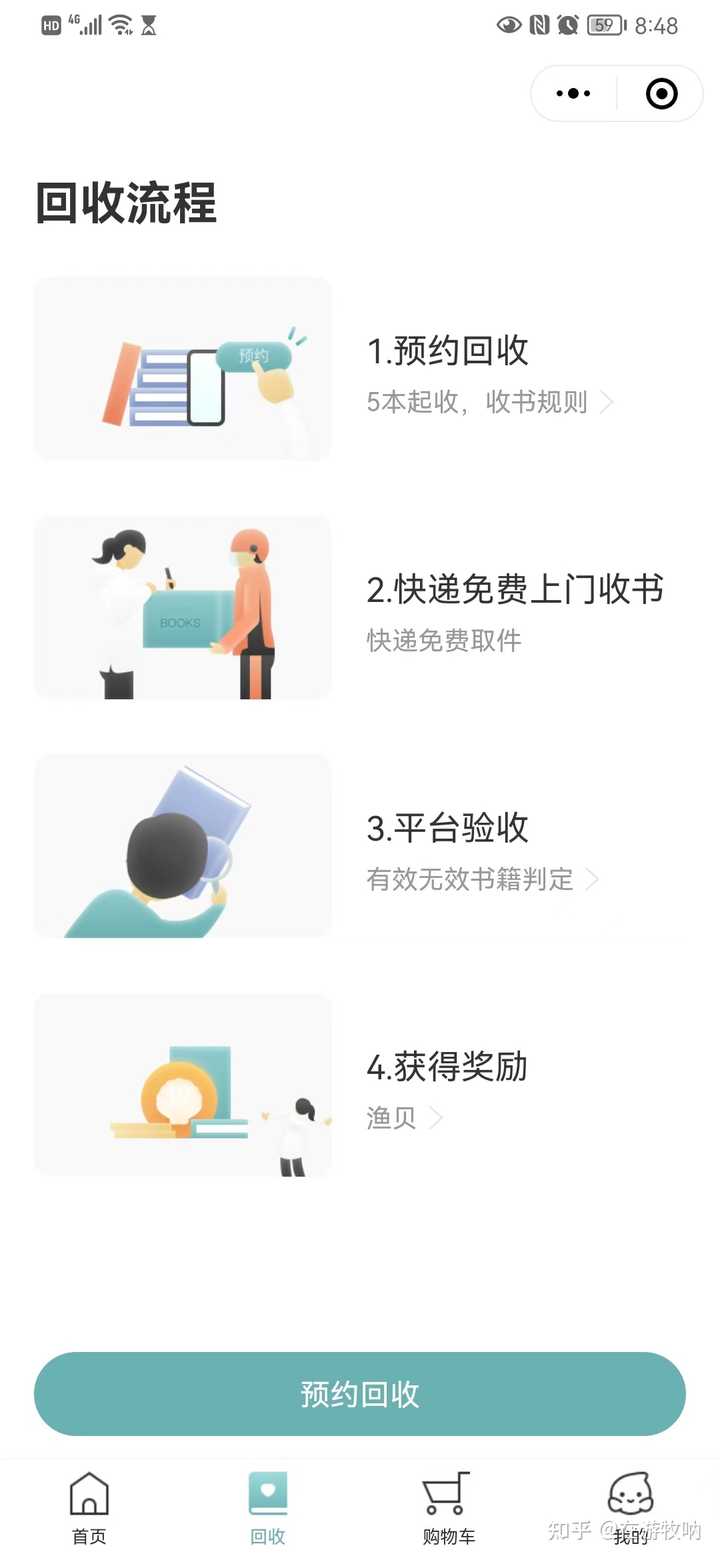 类似的二手书平台还有百遍阅、书壳,和多抓鱼、小谷吖、漫游鲸回收方式大同小异,主要差别是免费上门回收的门槛和回收奖励不同: