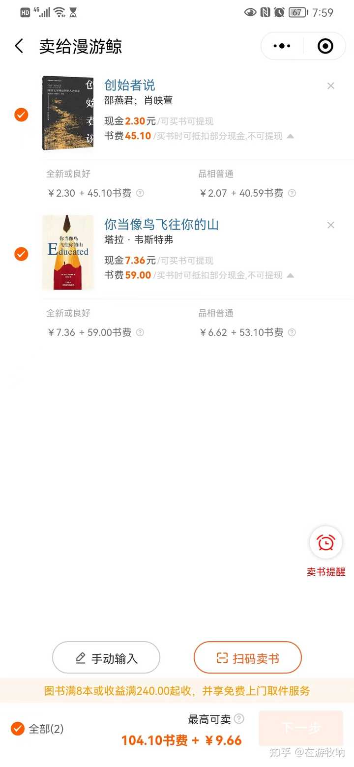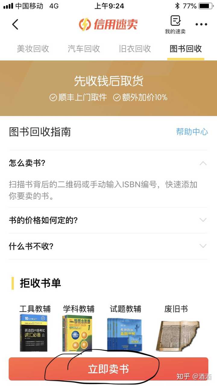 打开,扫书的条码,有回收起步价,凑够起步价下单后等顺丰上门取书,运费到付。整体流程跟闲鱼以前差不多。
