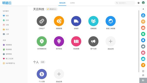 - 协作套件(免费提供,包含动态、任务、日程、知识、消息五大功能)