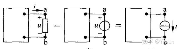 任一线性电阻电路中的一支路两端有电压,其中有电流 i 时,此支路可以用一个电压为 u 的电压源或一个电流为 i 的电流源替代,此电压电源(或电流电源)的参考方向与被替代的支路电压(或电流)的参考方向相同。