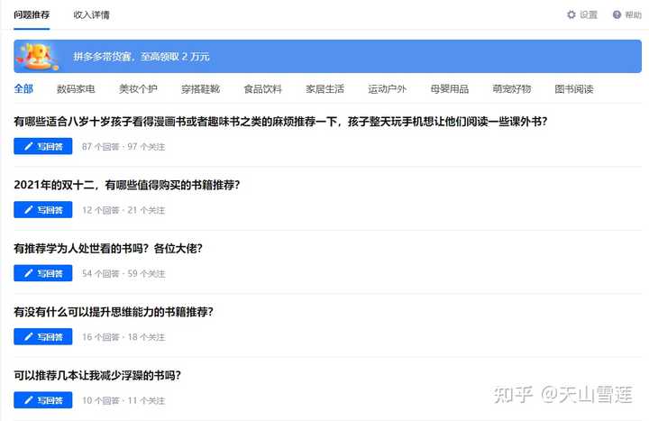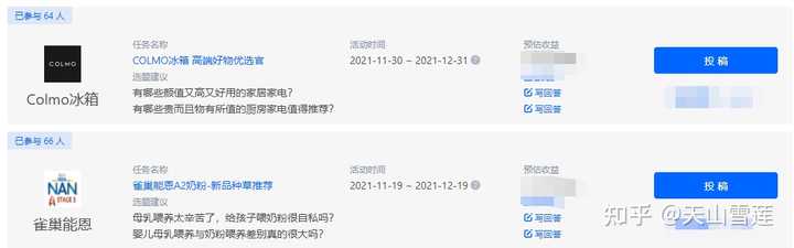 所以如果有过商单推广经验的,可以多去回答,目前里面基本上是理财、教育、美妆的推广多一些,擅长这几个方面的可以去写一写,任务类目也在不停的变,没事多关注,有合适自己的就多去写。