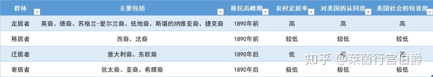 美国的百年移民潮可以分为四个群体,或曰层次,分别是“定居者”,“移居者”,“迁居者”,“寄居者”。