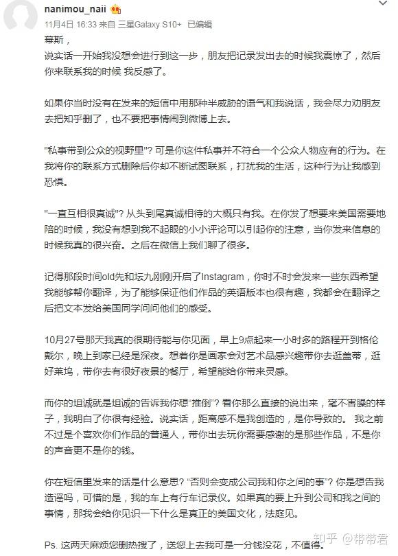 这个瓜就是最近被爆上热搜的瓜,简单来说,幕斯前往美国游玩,在微博发文表示需要地陪,当事人以小粉丝的心态接待了他,当陪玩体验结束后,幕斯却非常熟练的向当事人提出了非常直白的要求-推倒(sc)。