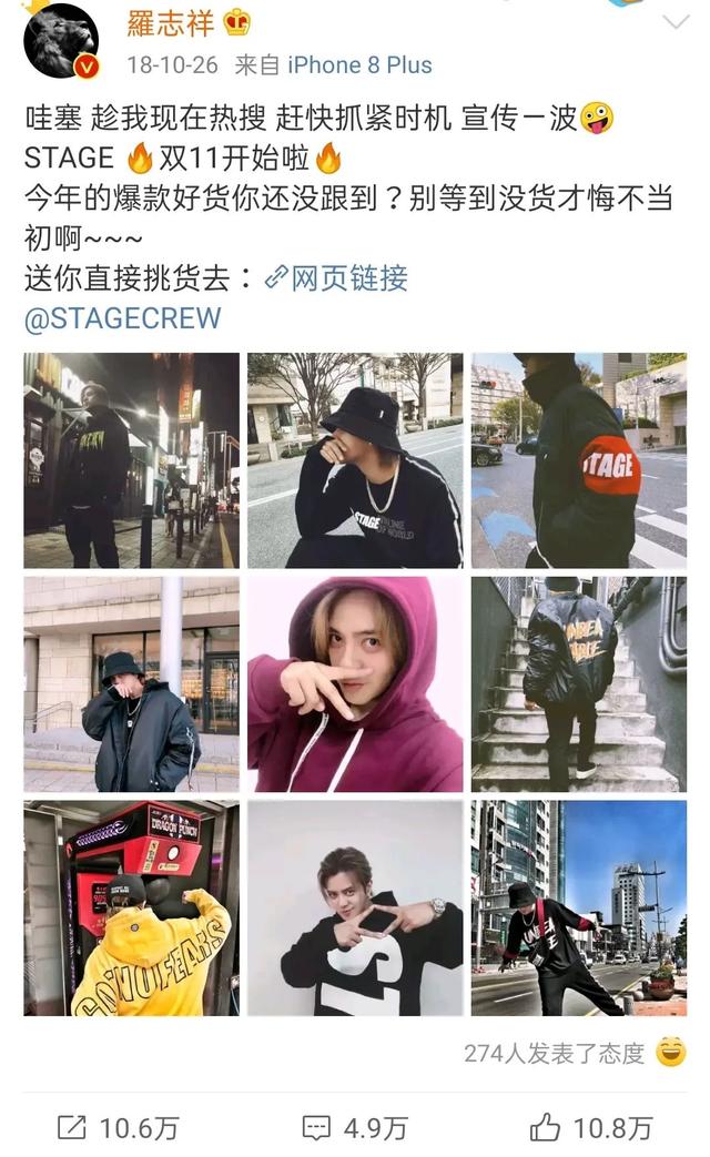 据公开信息,2006年,罗志祥创立了个人潮流品牌STAGE,并于2019年退出。在STAGE发展的过程中,罗志祥经常穿着STAGE的衣服出席各种公众场合,为这个品牌吸引了不少的流量。
