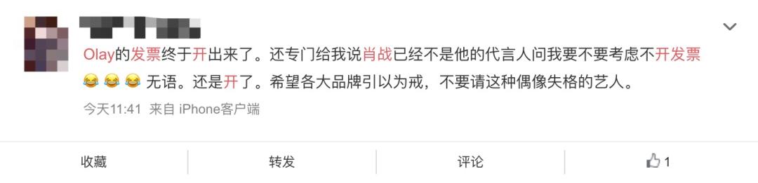尤其是近几年,明星形象相关的意外事件越来越多:形象优质如TFBoys,也会因为王源在公共场合抽烟而“翻车”;配合敬业如肖战,也因粉丝引战的“227事件”至今没能脱身,代言品牌Olay也惨遭网友“集体开发票”抵制。