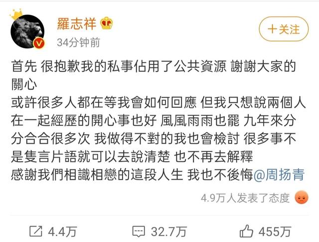 中午12点,罗志祥在微博回应:“很多事不是只言片语就可以去说清楚,也不再去解释”。但从舆论反馈来看,粉丝并不买单。