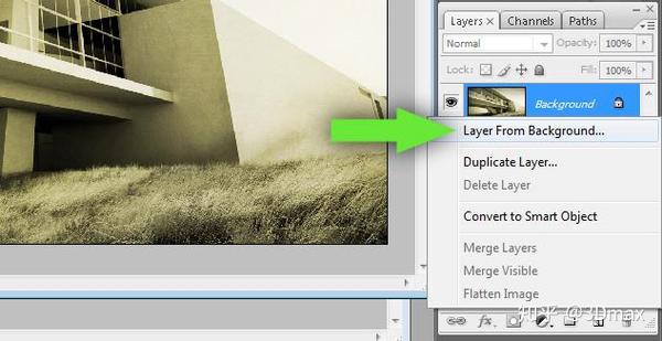 1.要解锁背景层,请右键单击该层,然后选择“背景层”。您也可以通过保留原始图层的方式来复制图层。