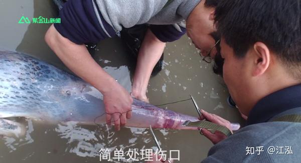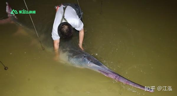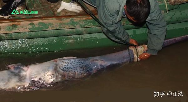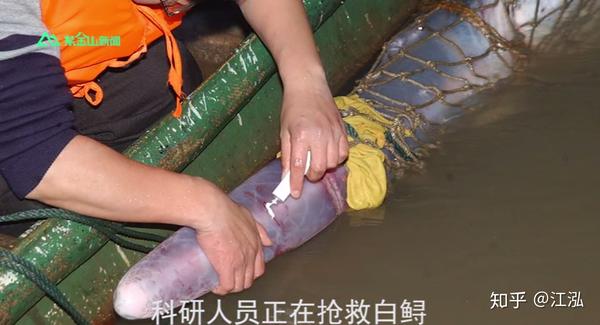 图注:正在进行抢救的白鲟,图片来自紫金山新闻