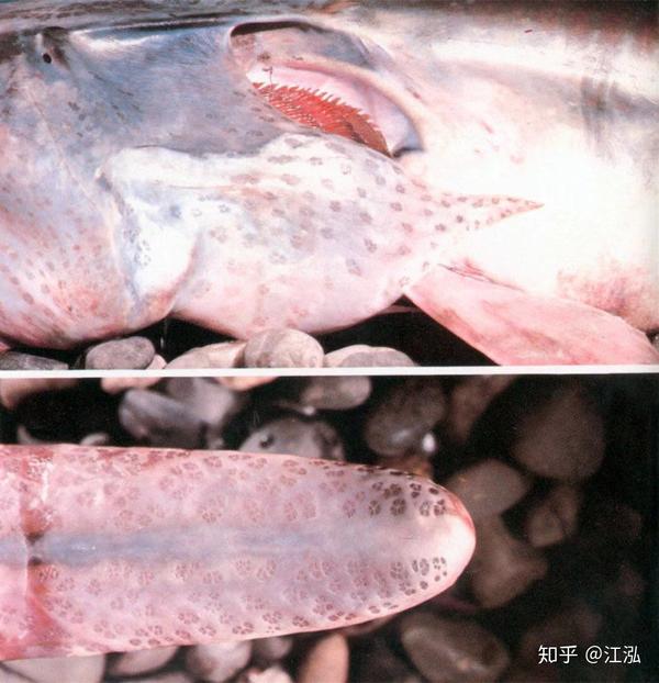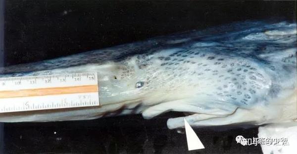 图注:白鲟吻部梅花状的凹陷,图片来自网络