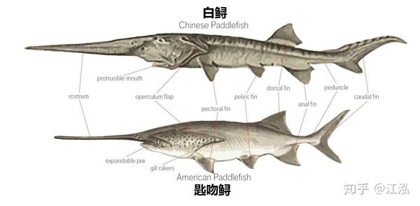图注:匙吻鲟与白鲟的外形对比,图片来自网络