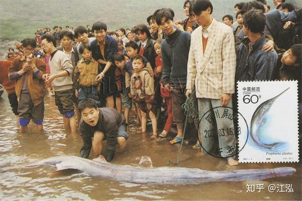图注:1994发行的邮票中的白鲟,图片来自网络