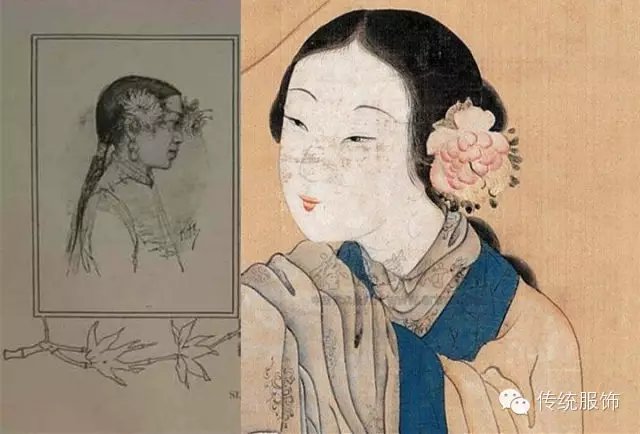 请不要在执着于这些就算看再久还是有点突兀的两把头好么!而且两边还可以加簪花,有时候真的觉得多花点时间看资料,比造型师在那儿丢脸来的好!(下图右曾有汉服商家拿来给自己的商品装逼,也是蠢得不自知啊!)