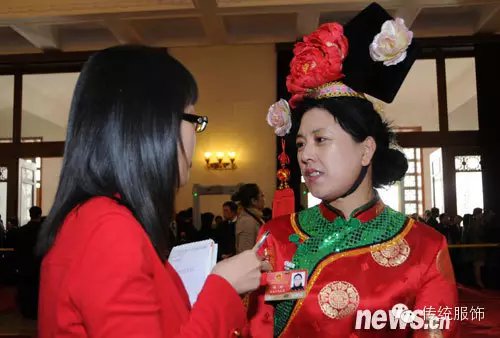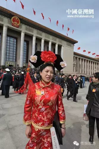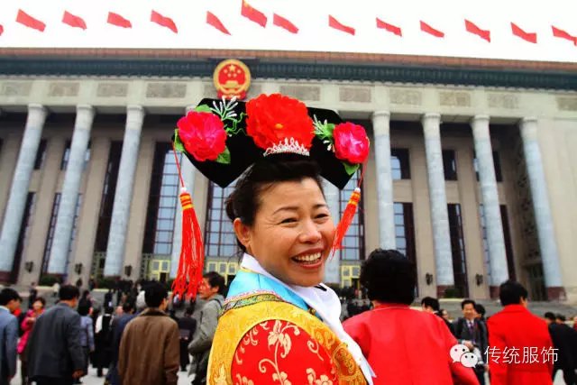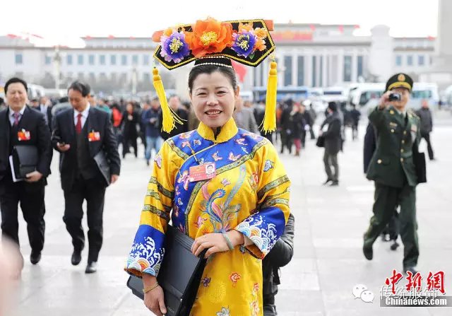 以上是满族籍人大代表们的“盛装”,说不出的滑稽,仿佛看见了景区里几块钱就可以买到的旗头发箍,只有心智未成熟的小学女生才会买来假扮格格。