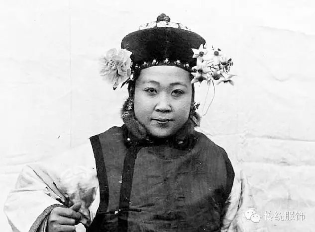 由于“坤秋”不像瓜皮帽之类的会突出一个尖,老照片里也会簪花,所以正面的时候常被人误认为“钿子”。