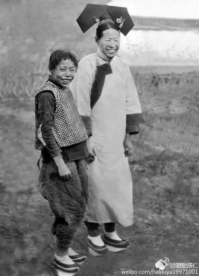 △ 1918年戴坤秋的旗女(注意画面右侧的汉女,此时已经是民国了!)