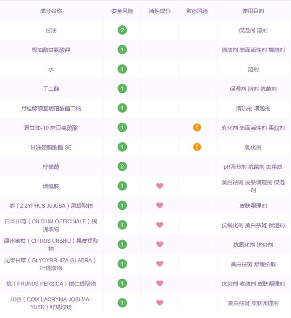 成分非常简单,皂基也排在成分表靠后的位置,皮肤有些敏感但容易出油的小仙女可以考虑用这款。